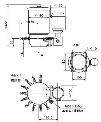 3、向干油泵貯油器內(nèi)補(bǔ)脂必須使用SJB-D60型手動(dòng)加油泵或DJB-200型電動(dòng)加油泵從貯油器的加油口加入,注意在貯油器內(nèi)無潤滑脂時(shí)嚴(yán)禁啟動(dòng)電機(jī)運(yùn)轉(zhuǎn)。