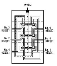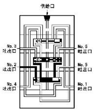 5、流入的潤(rùn)滑劑推動(dòng)活塞C向右移動(dòng)、右腔的潤(rùn)滑劑壓向NO.4吐出口經(jīng)外部配管送向潤(rùn)滑點(diǎn)。當(dāng)活塞C運(yùn)動(dòng)至右極限時(shí)活塞B左腔開始進(jìn)入潤(rùn)滑劑。