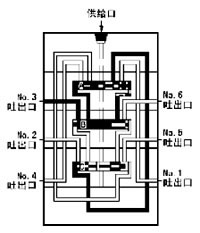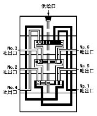1、通過潤(rùn)滑泵加壓送出的潤(rùn)滑劑,經(jīng)供給口流入按圖示箭頭方向分別推動(dòng)活塞A、B、C 動(dòng)作。此時(shí)活塞A、B左腔在油壓的作用下處在右位不動(dòng),活塞C右腔進(jìn)入壓力,油開始向左移動(dòng)。