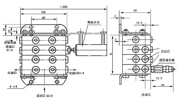 1、分配器為單柱塞多片組合結構,每片有兩個出油口,分為JPQ1、JPQ2、JPQ3 和JPQ4四種形式。 ①每種形式的分配器,一般按額定給油量相等的單片組合,需要時也可將額定油量不同的單片混合組合。 ② JPQ4型組合時需有一片控制片,此片無給油口。 ③相鄰的二個或二個以上的給油口可以合并成一個給油口給油,此給油口的給油量為所有被合并給油口的額定給油量之和。 2、JPQ1型和JPQ2型分配器在系統中串聯使用,JPQ3型和JPQ4型分配器在系統中并聯使用。 3、分配器均裝有一個運動指示桿,用于觀察分配器工作情況。根據需要還可以安裝限位開關,對潤滑系統進行控制和監視。 4、JPQ2型、JPQ4型分配器根據需要可以安裝超壓指示器。