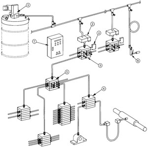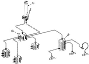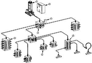 3、電動潤滑泵方式 由于裝有壓力開關(guān),低油位開關(guān),循環(huán)開關(guān)等報警裝置,依靠電控箱,就能實現(xiàn)完全自動化。 排油壓力為20MPa,排油量根據(jù)設(shè)計選用確定,這種方式廣泛應(yīng)用于各種機(jī)械設(shè)備中。 電動潤滑泵包括單線多點泵。 4、油桶蓋上裝泵方式 將泵本體直接裝在油桶蓋板上,故安裝方便,在塵埃多的場合非常適合,由于沒有必要將潤滑油從油桶移到油泵,故不會由于塵埃使泵、分配器、軸承受損。 驅(qū)動方式有電動和氣動二種,排出油壓最高可達(dá)20MPa。 這種方式特別適合大型機(jī)械、高爐、軋機(jī)等場合使用。
